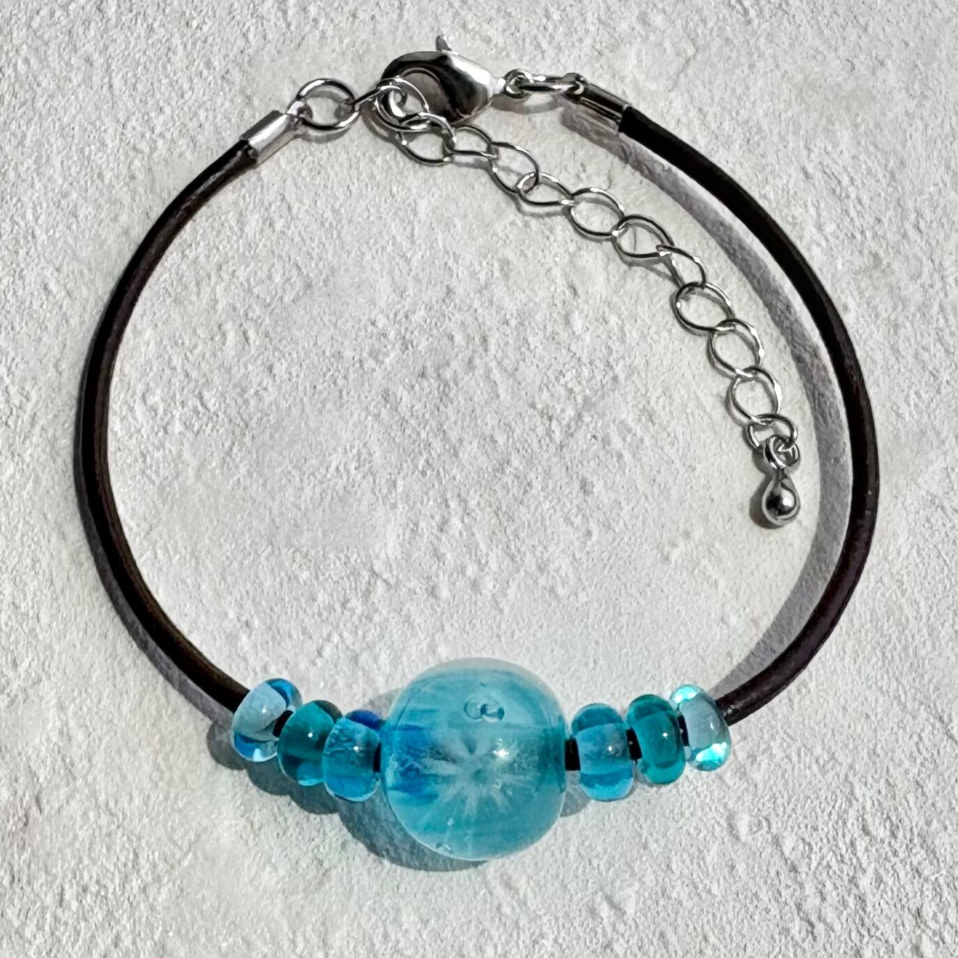 まるで本物のミズクラゲが泳いでいるかのようなガラスのミズクラゲブレスレット。